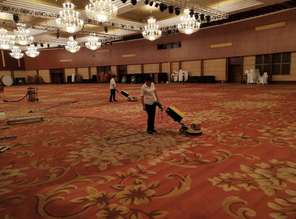5、干泡刷洗:用裝有打泡器、地毯沙發刷的單盤掃地機,以干泡刷洗地毯沙發。等清潔劑對地毯沙發產生作用一會后,在重復刷洗工作。