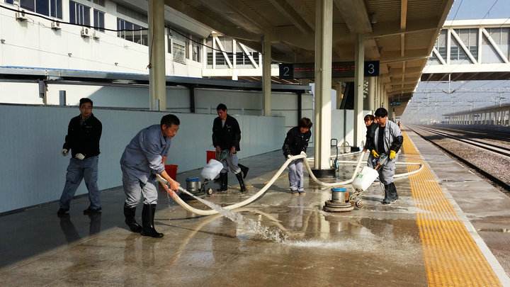 地面清洗:著重處理使用中地面遺留下的漆點(diǎn)、膠點(diǎn)等污漬,然后用清洗機(jī)對(duì)地面進(jìn)行清洗。